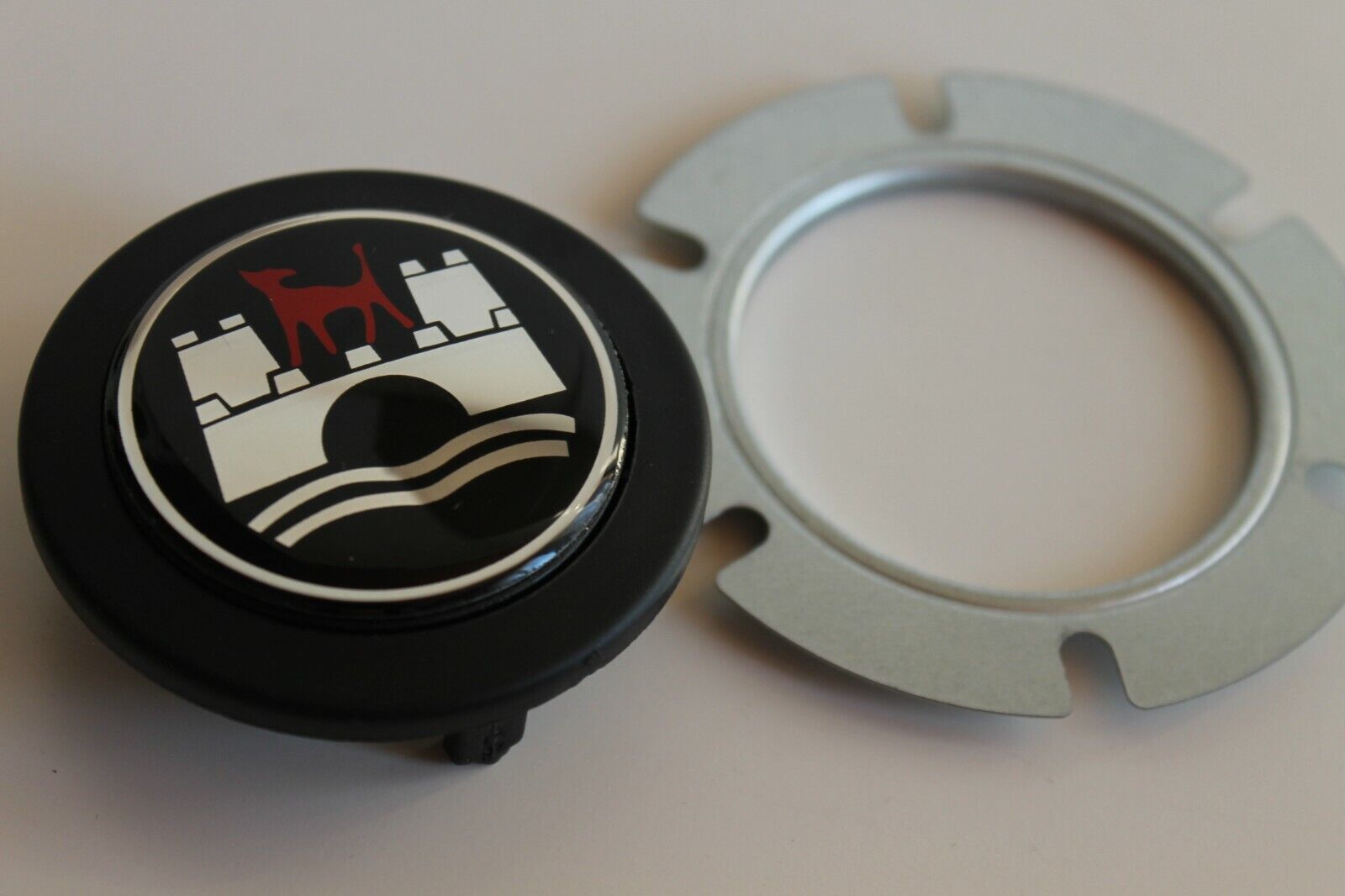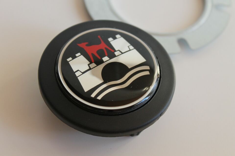 This Wolfsburg VW horn button is in excellent condition and includes the metal retaining ring, ensuring a secure and firm fit to your steering wheel.