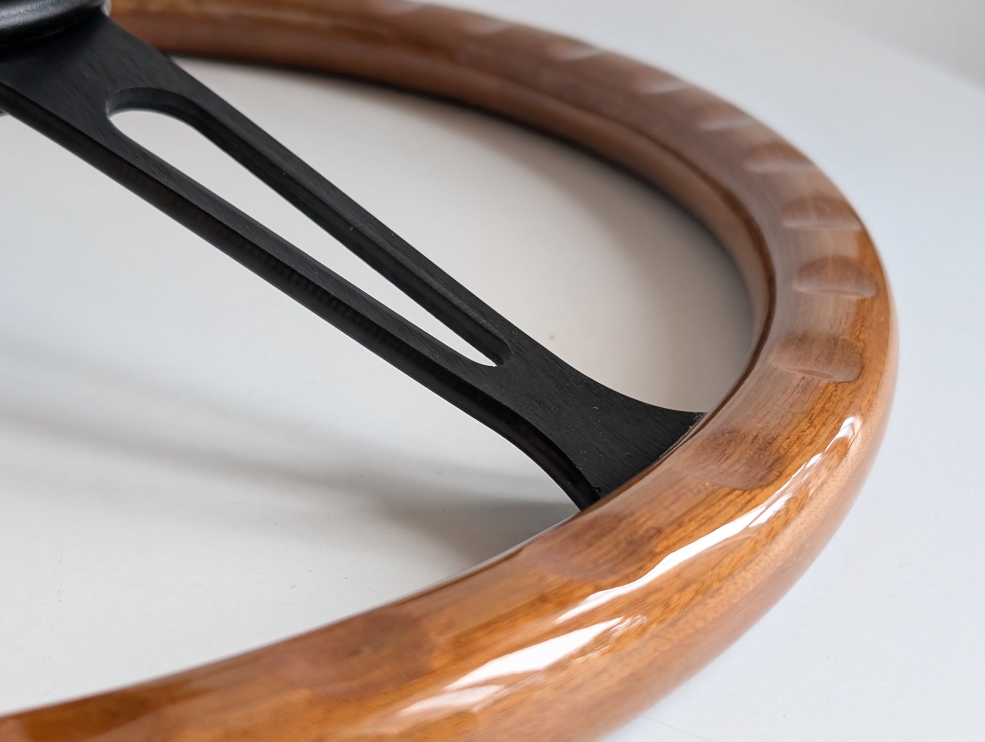 Steering Wheel For BMW - E24 E28 E30 E32 E34 (1986-1992) - Wooden Rim, Black Trim, Black Spokes, Vintage Style, 380mm