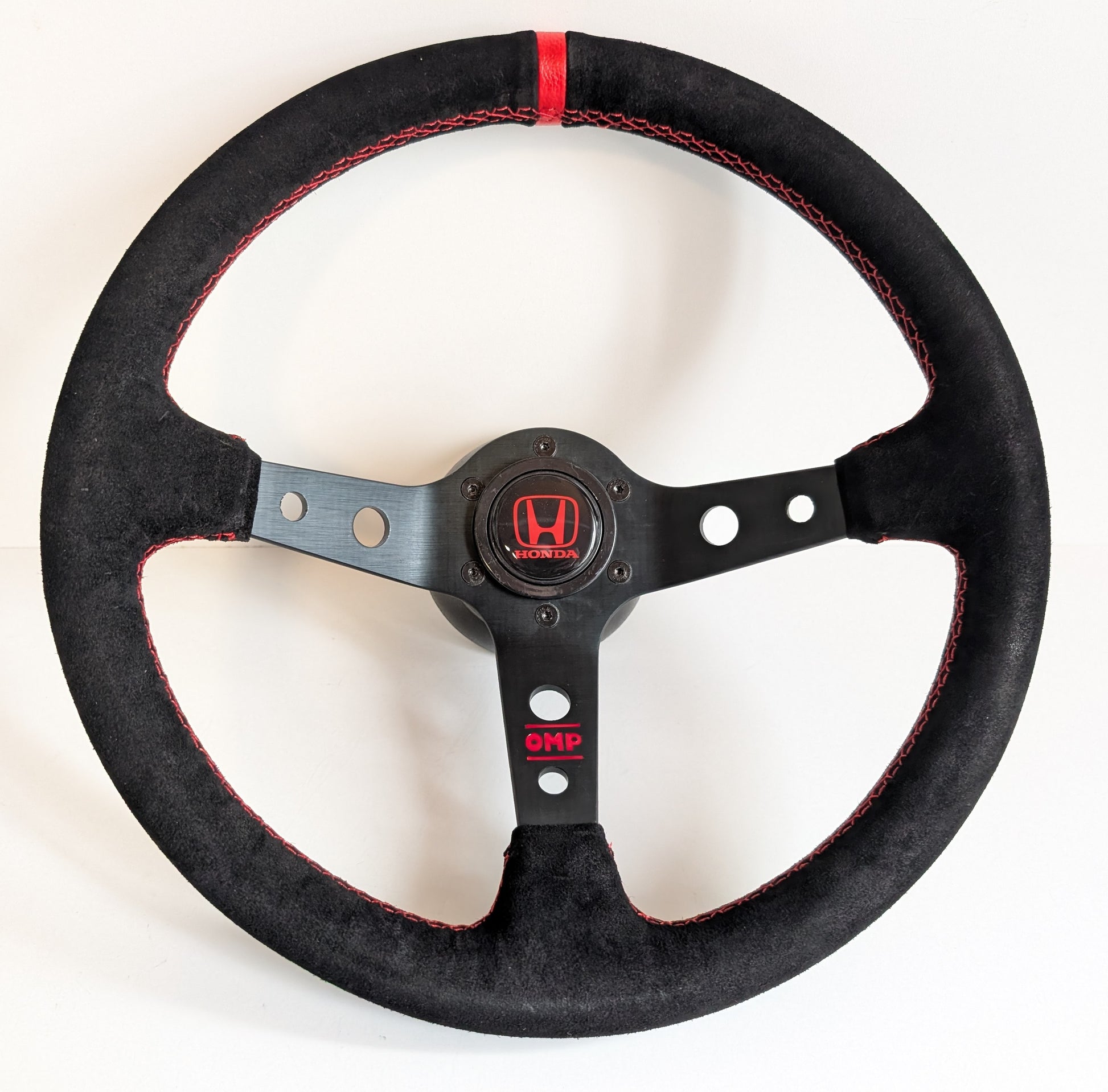 Steering Wheel For Honda Prelude CRX Del Sol Civic Accord (1993-2000) - Red Alcantara Leather, Suede, Deep Dish, 350 mm