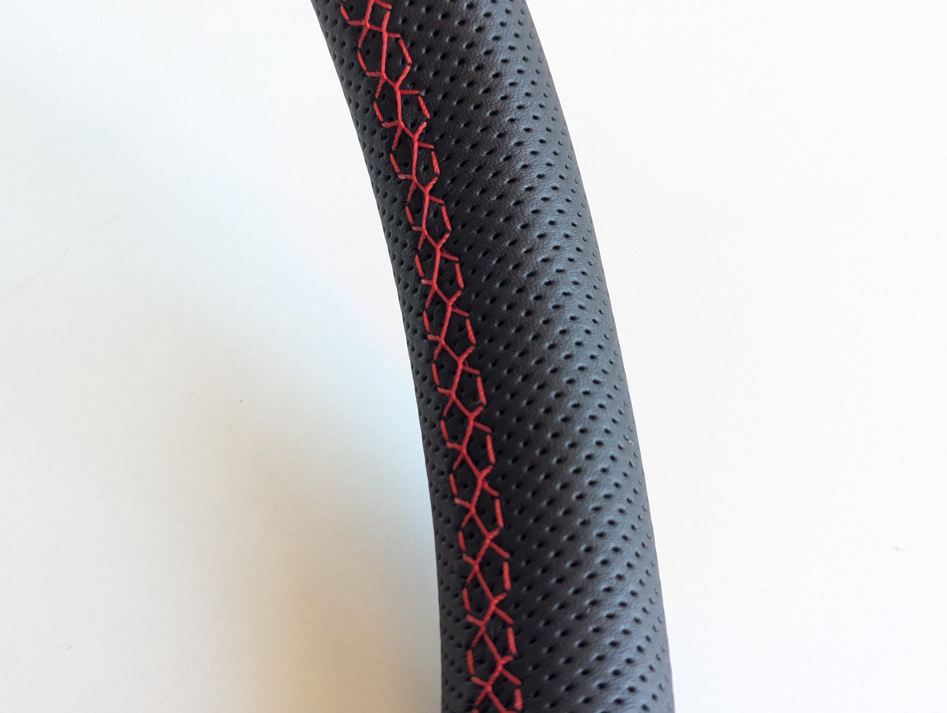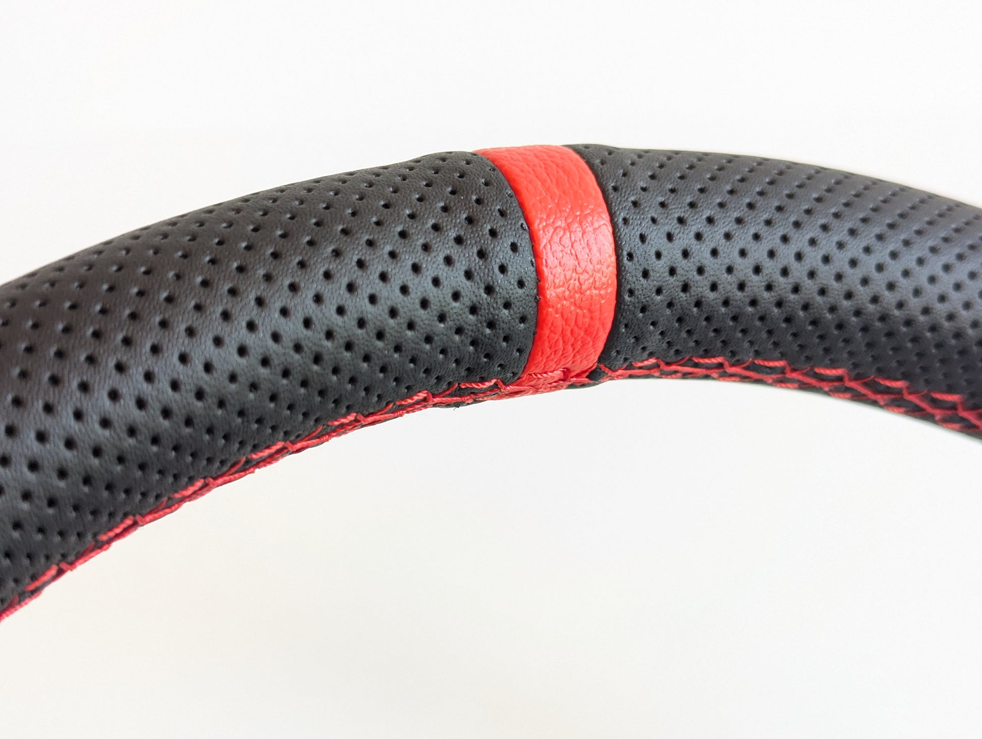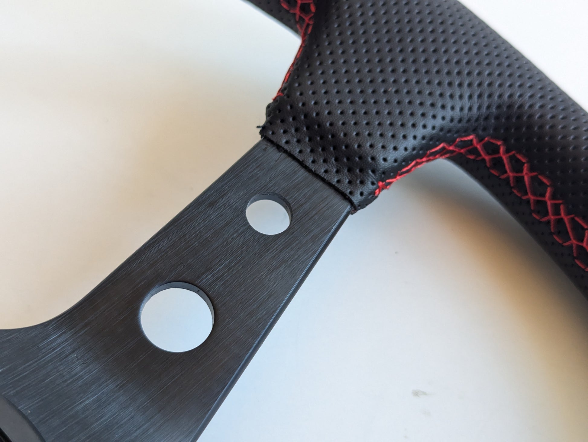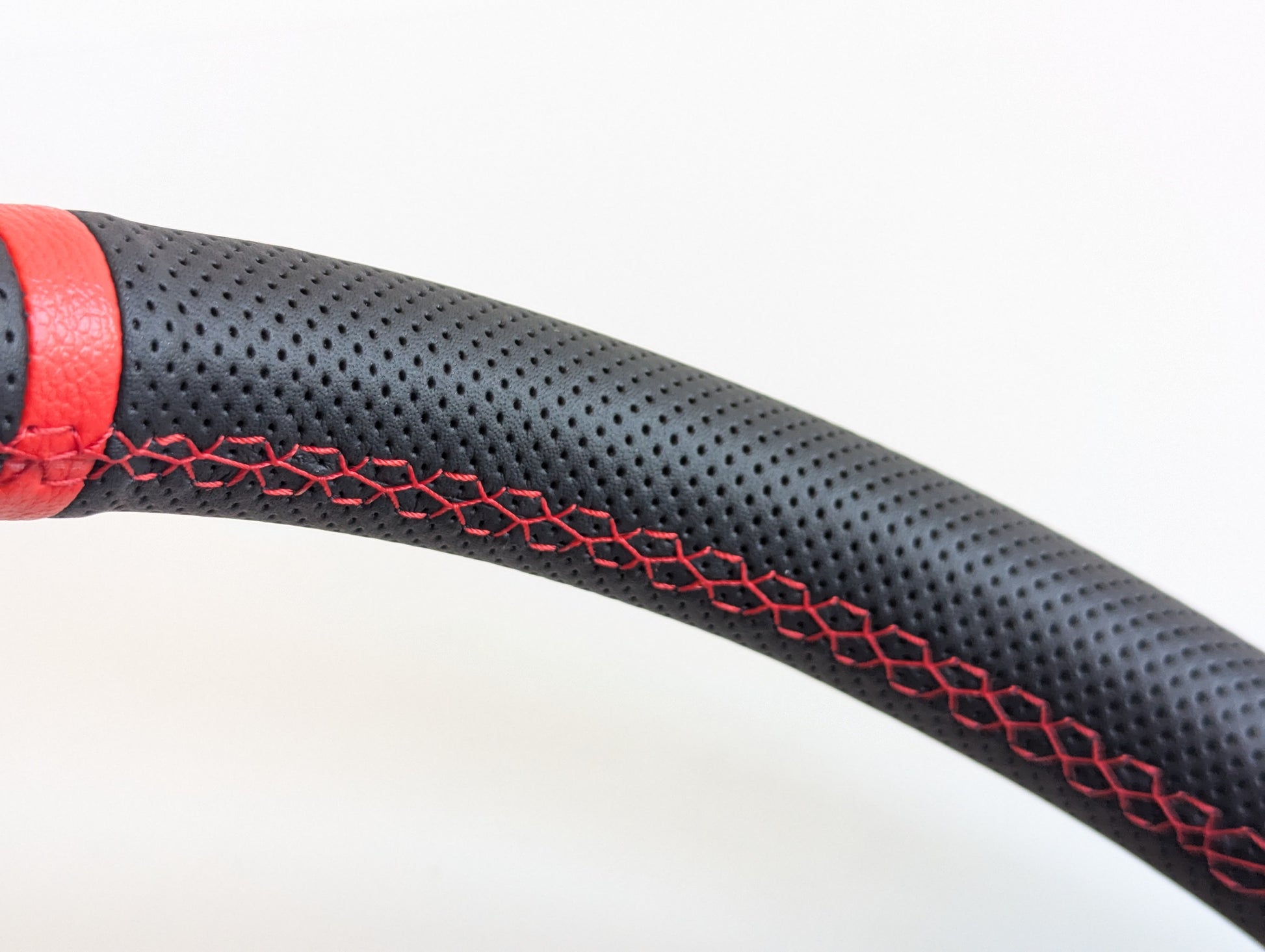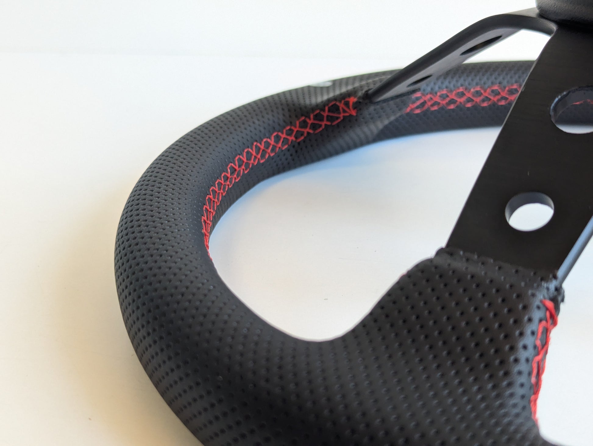 Steering Wheel For Mitsubishi Eclipse Lancer Evo Galant Pajero - Deep Dish, Red Stitching, Black Spokes with Holes, Sport Vision, 350 mm