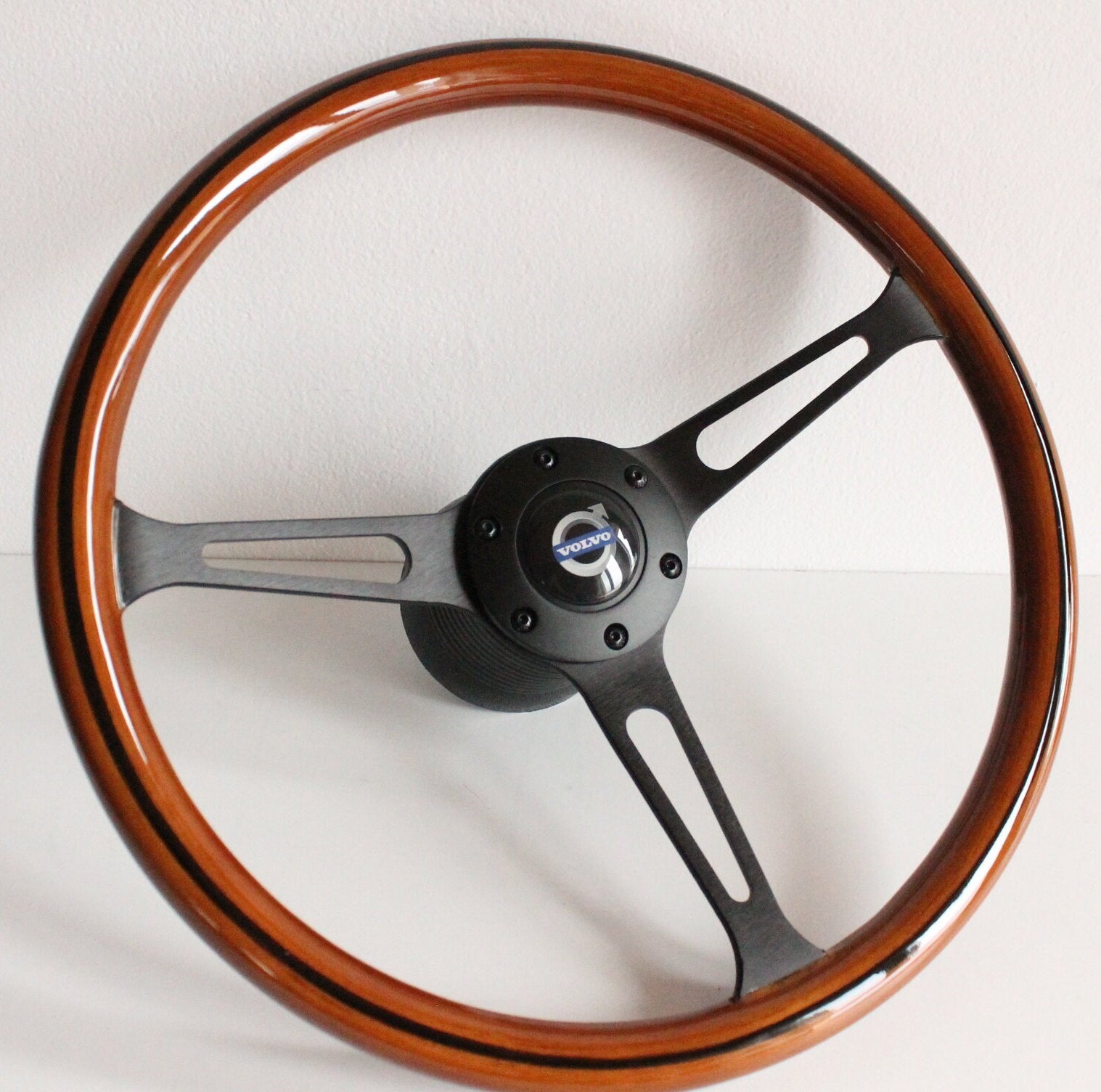Steering Wheel For VOLVO 1800 1800ES - Wooden Rim, Black Spokes, Black Trim, Classic, 380mm