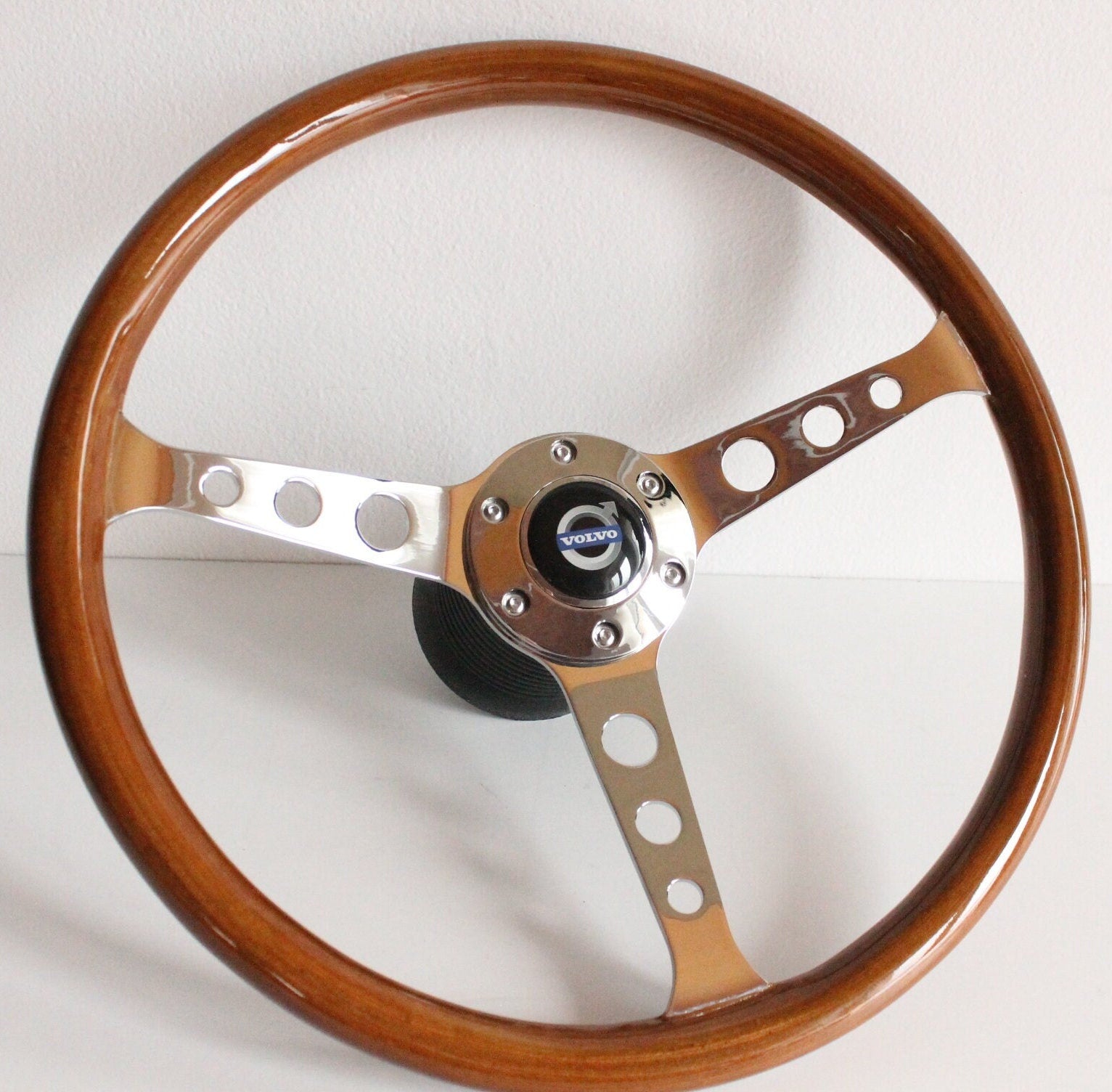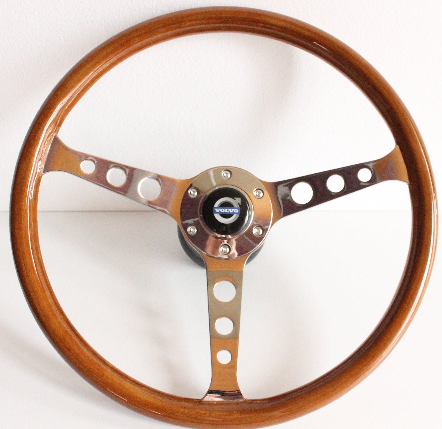 Steering Wheel For VOLVO 1800 1800ES - Wooden Rim, Chrome Spokes with Holes, Classic, Vintage Style, 380 mm