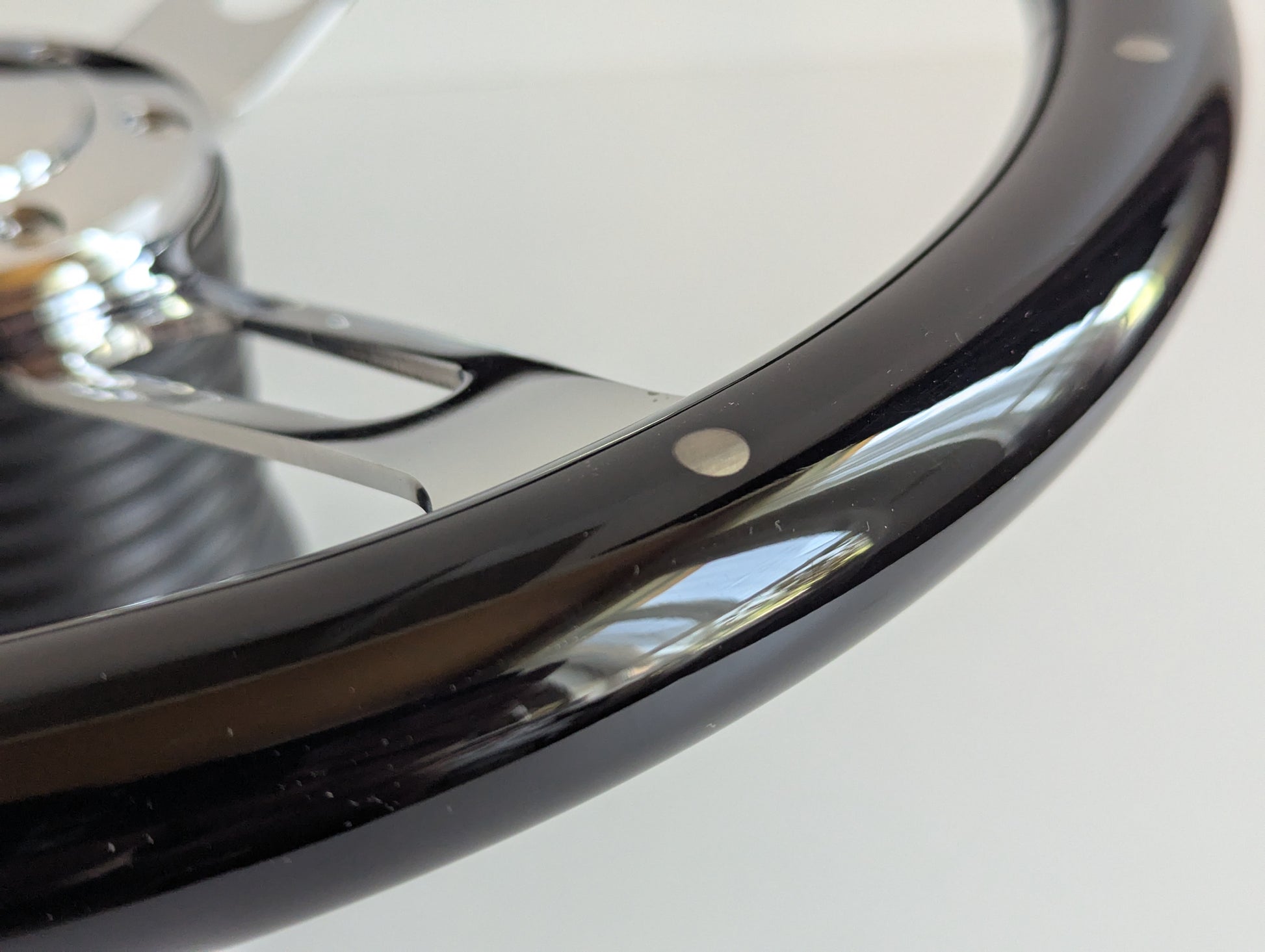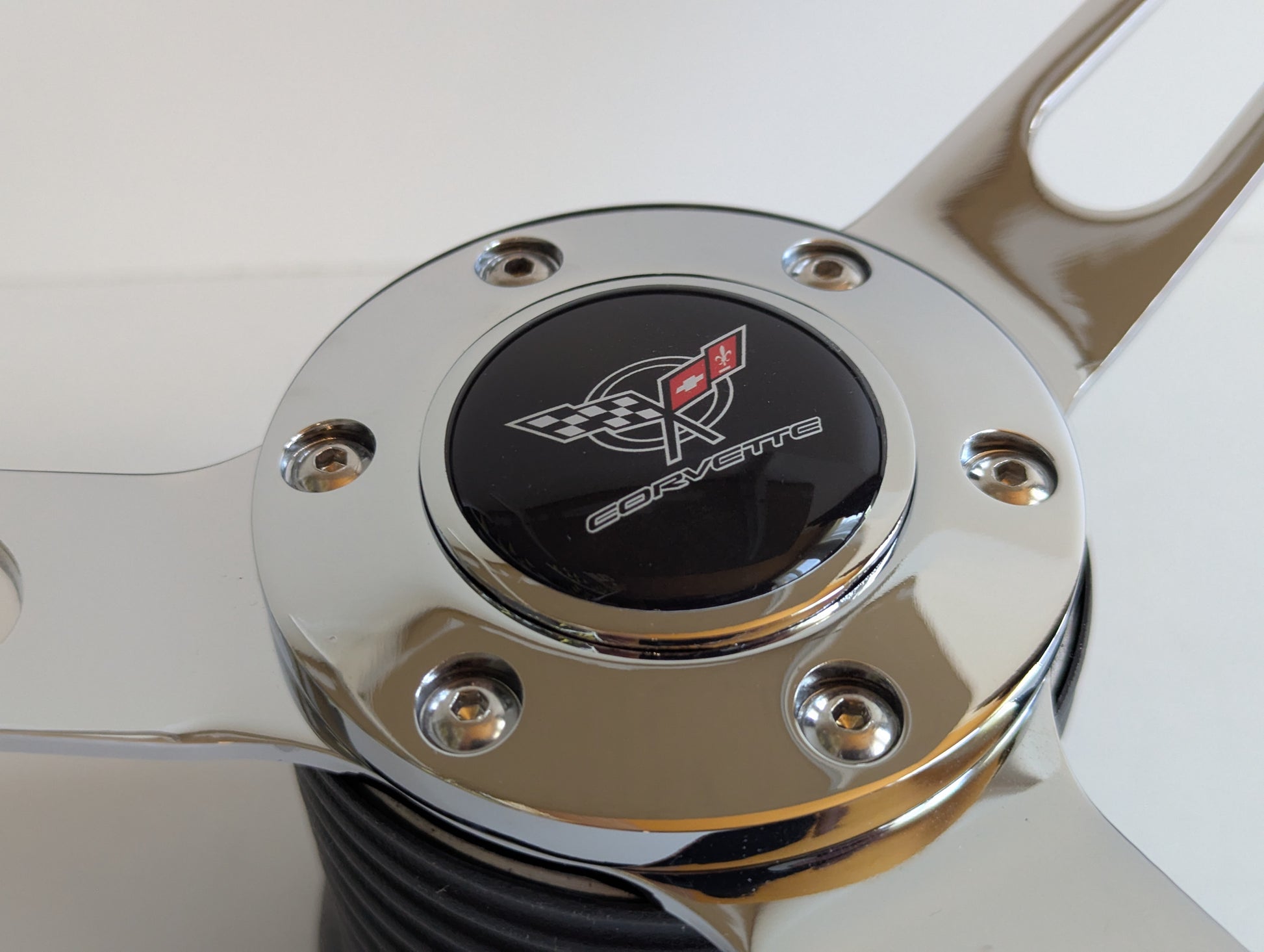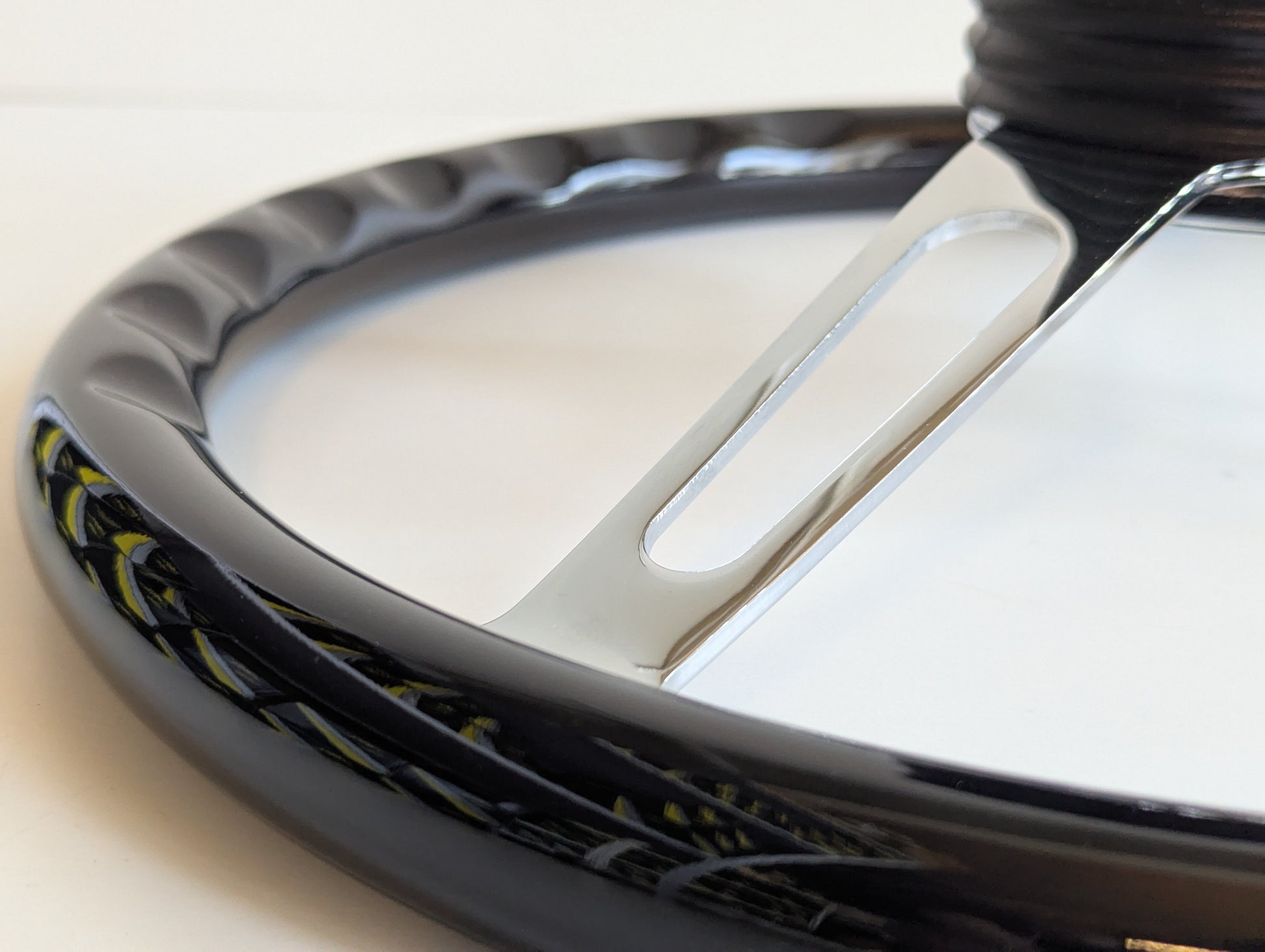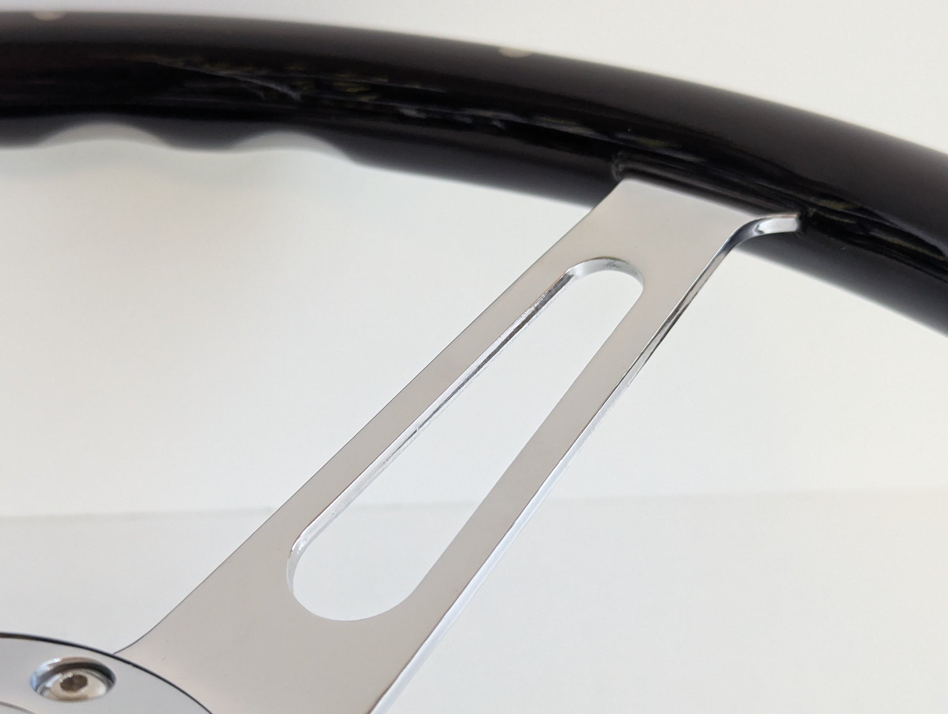 Steering Wheel For Chevrolet Corvette C3 Chevy (1969 - 1983) - 380mm Wooden Rim, Black Finish & Chrome Spokes