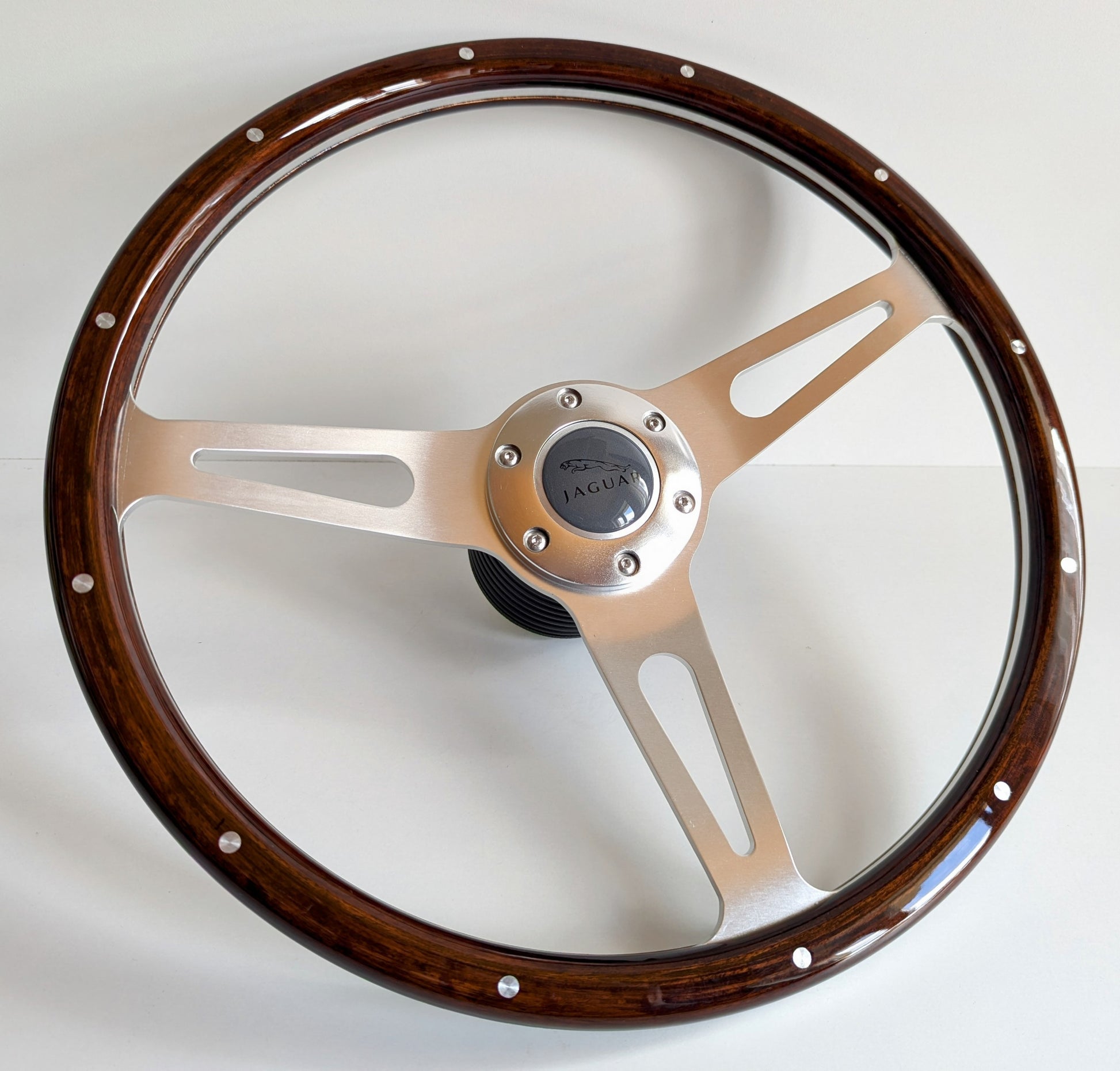 Steering Wheel For Jaguar XJ12 XJ XJ5 XJ6 XJS - Wooden Rim, Classic, Vintage Vision, Silver Spokes, 380 mm
